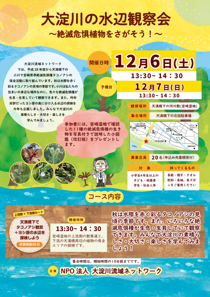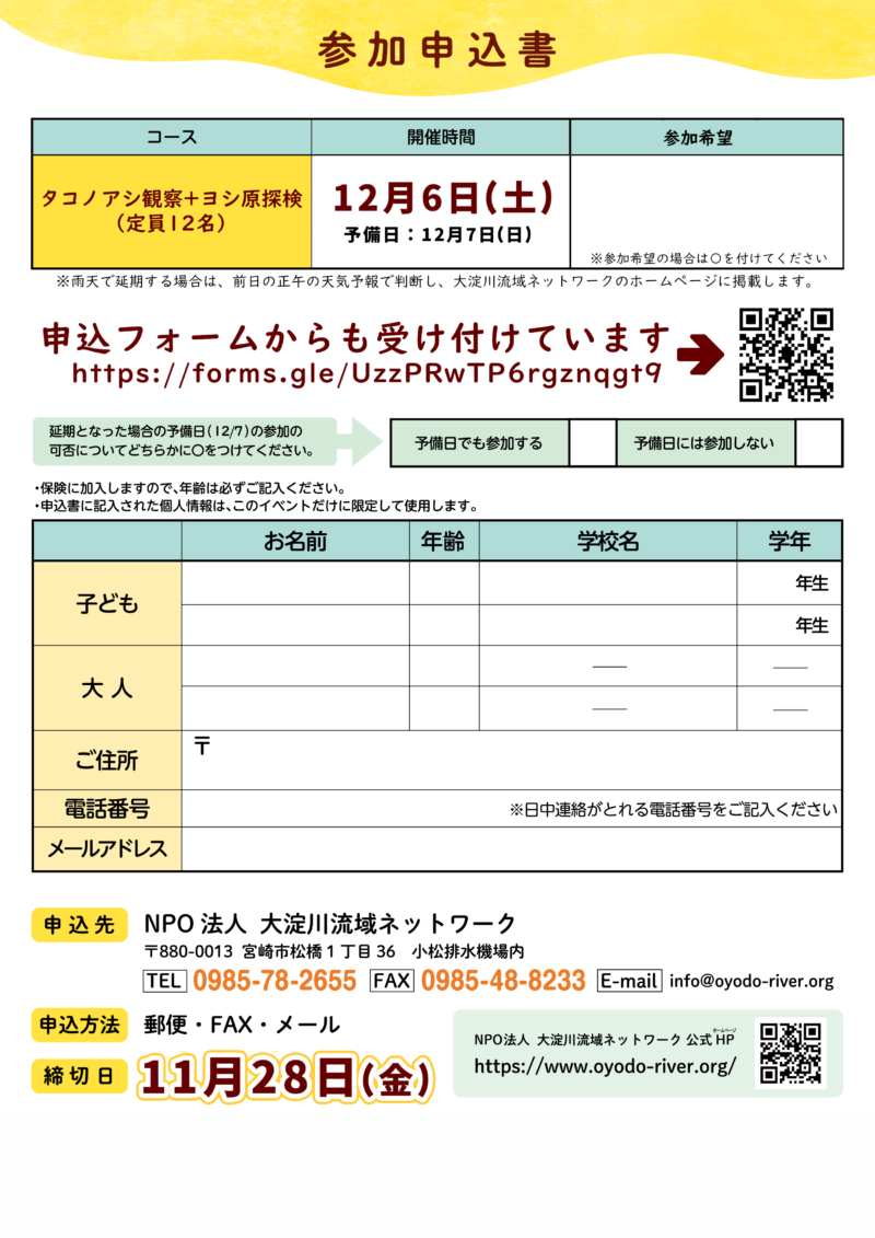 申込フォームからも申込できます。大淀川の水辺観察会 申込フォーム