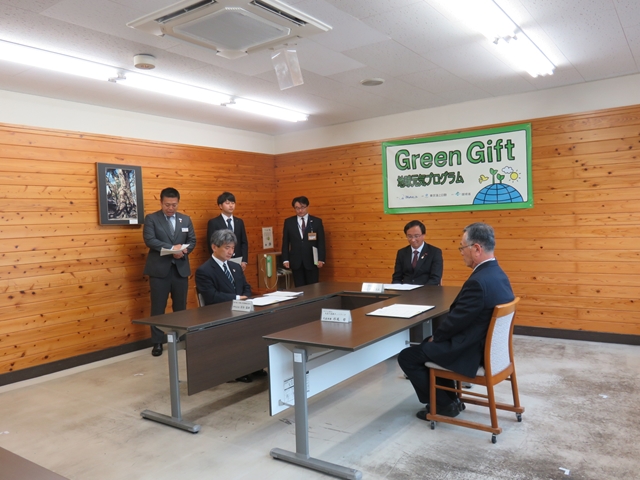 東京海上日動火災保険、宮崎県、大淀川流域ネットワークで、Green Gift地球元気プログラムの「環境保護および環境教育の促進にかかる包括協定書」の調印式を行いました。