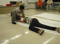 川での体験活動の基礎知識や技術および初期対応的な水難救助活動などについて、講義と実習を通して学習しました。