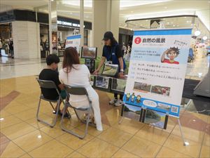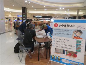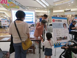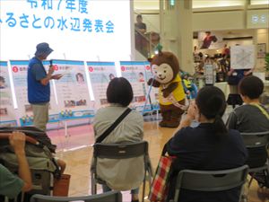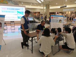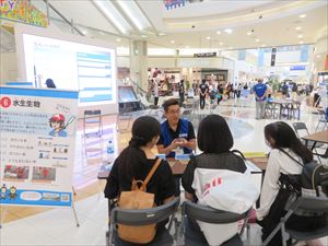 子どもたちがまとめた水辺環境調査の結果をブース内で放映しました。