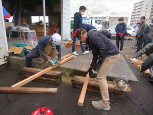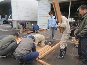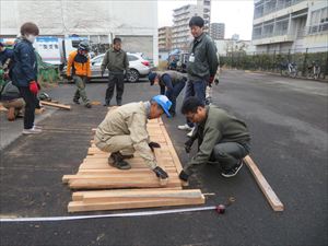 そのワシントニアパーム伐採材を活用して、天満橋下の河川敷に木道を設置するための準備を進めています。