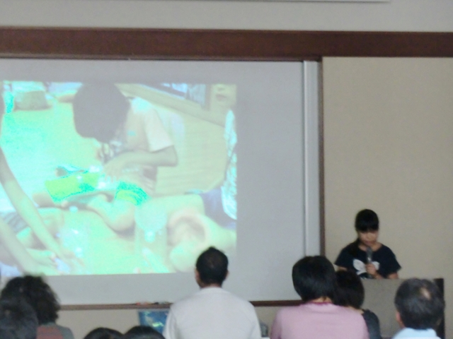 大淀川の自然体験合宿に参加した時の作文を発表してくれました。